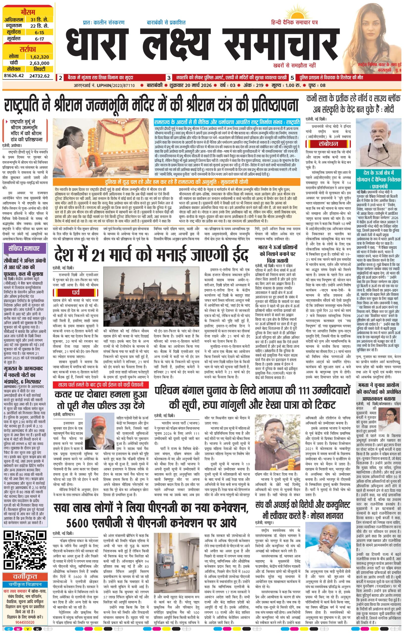 Read Moreई पेपर पढ़ें प्रातः कालीन संस्करण बाराबंकी से प्रकाशित हिंदी दैनिक धारा लक्ष्य समाचार पत्र 20 मार्च 2026