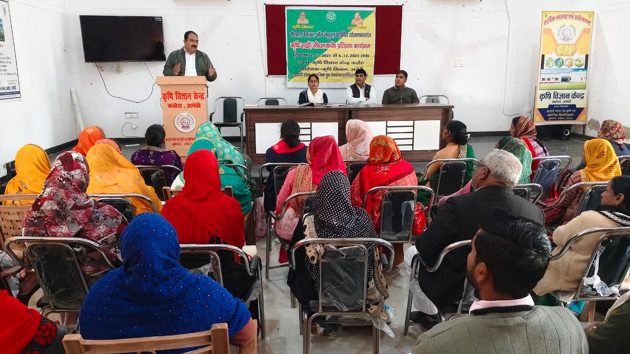 धारा लक्ष्य समाचार पत्र स्थान : कृषि विज्ञान केंद्र कठौरा, जगदीशपुर, अमेठी जगदीशपुर/अमेठी। जगदीशपुर के आचार्य नरेंद्र देव कृषि एवं प्रौद्योगिकी विश्वविद्यालय, कुमारगंज अयोध्या द्वारा संचालित कृषि विज्ञान केंद्र कठौरा जगदीशपुर में चल रहे प्राकृतिक खेती प्रशिक्षण कार्यक्रम का आज तीसरा दिन किसानों और कृषि सखियों के लिए अत्यंत महत्वपूर्ण रहा। प्रशिक्षण के इस चरण में प्रतिभागियों को जीवामृत बनाने की विधि लाइव प्रायोगिक रूप से सिखाई गई। प्रशिक्षकों ने किसानों से स्वयं जीवामृत तैयार करवाकर इसकी मात्रा, उपयोग और फसल पर पड़ने वाले लाभों की विस्तारपूर्वक जानकारी दी। कार्यक्रम…