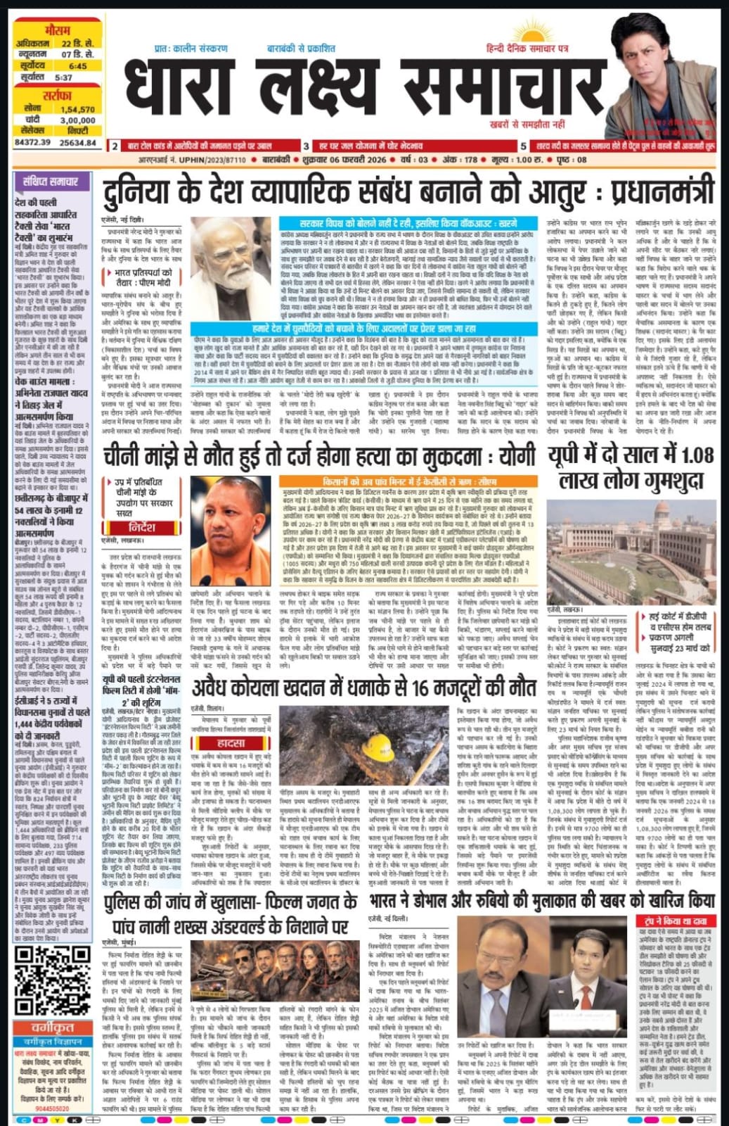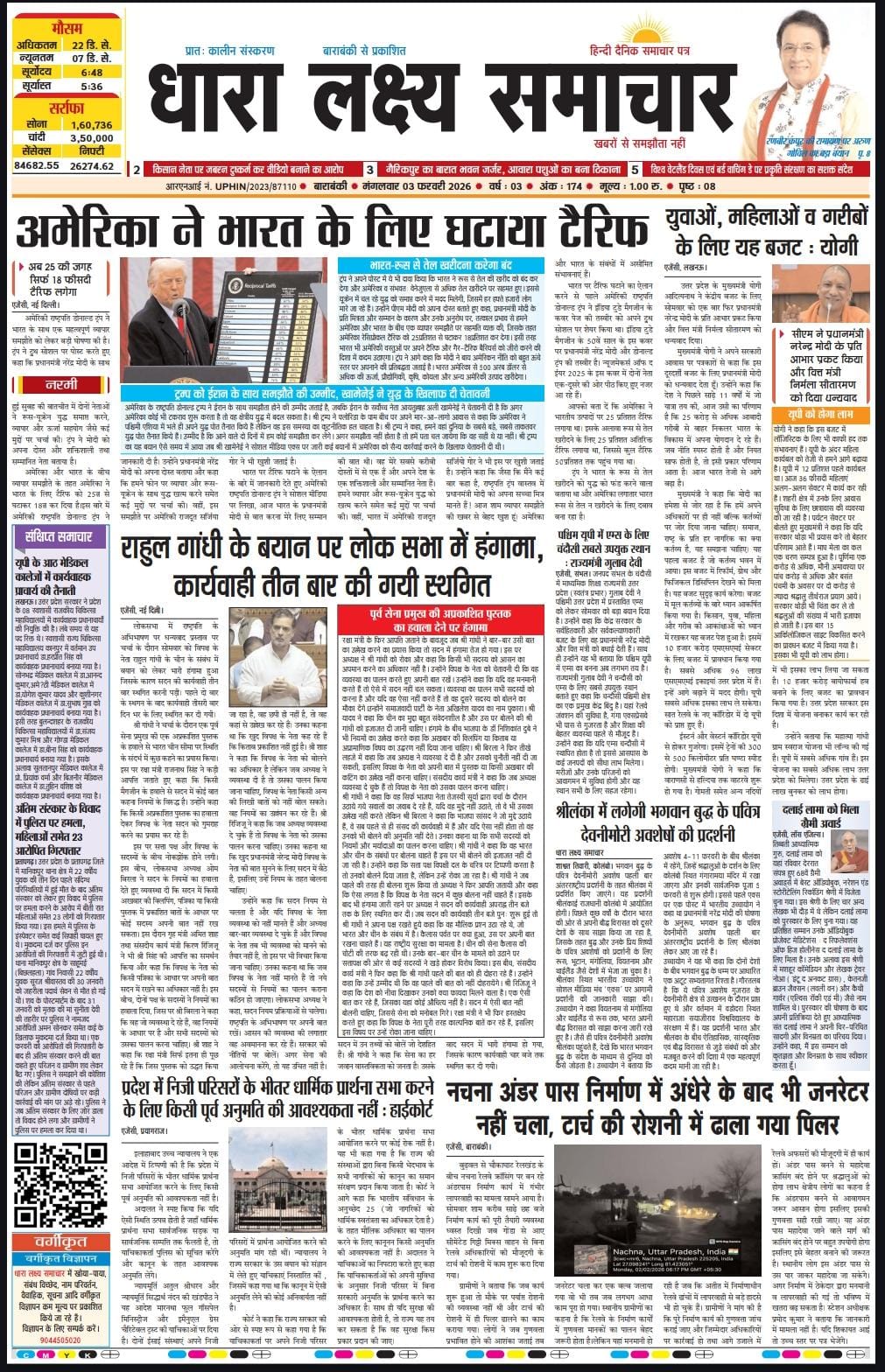 ई पेपर पढ़ें प्रातः कालीन संस्करण बाराबंकी से प्रकाशित हिंदी दैनिक धारा लक्ष्य समाचार पत्र 02 फरवरी 2026