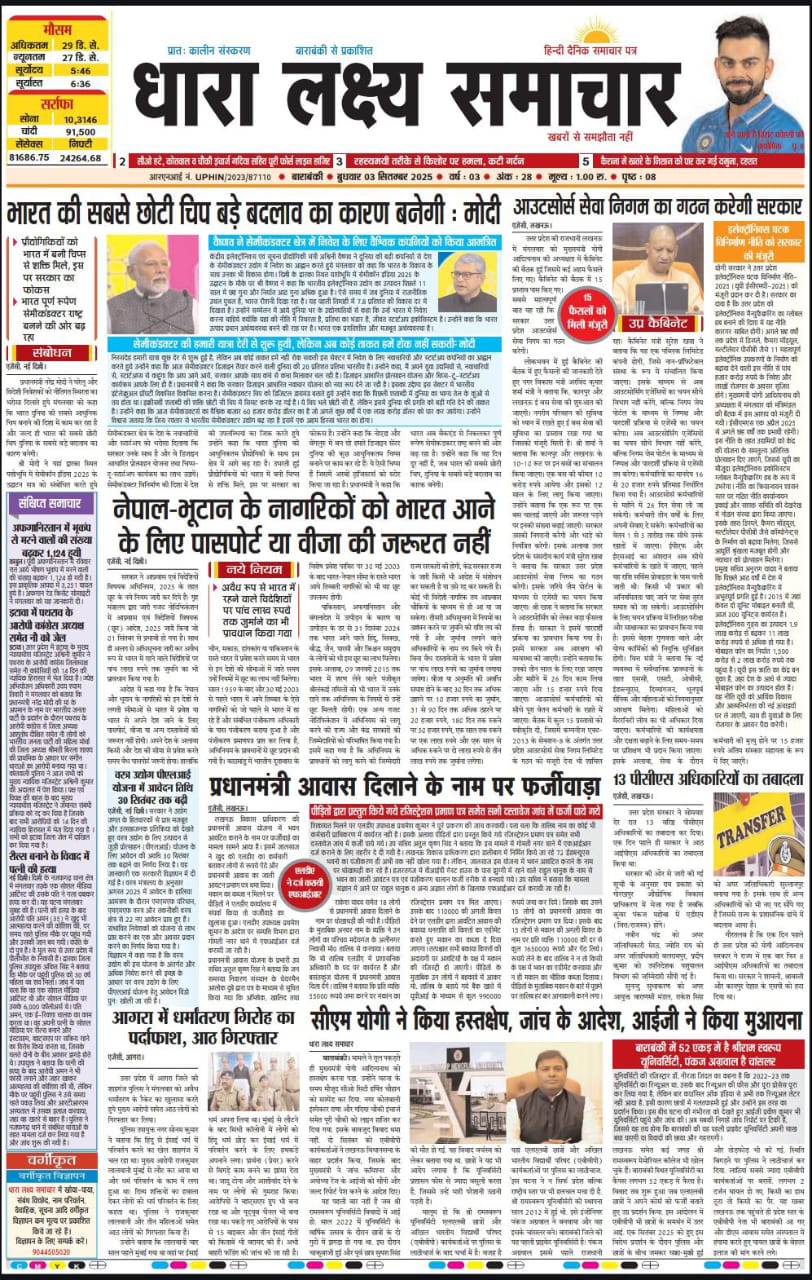 अखिल भारतीय उद्योग व्यापार मंडल ने मनाया व्यापारी दिवस धारा लक्ष्य समाचार पत्र बाराबंकी, 03 सितंबर। देवा चिनहट रोड स्थित माती बाजार में अखिल भारतीय उद्योग व्यापार मंडल माती के अध्यक्ष रमेश चन्द्र वर्मा के नेतृत्व में व्यापारी कार्यकर्ताओं द्वारा राष्ट्रीय व्यापारी दिवस पर एक भव्य कार्यक्रम का आयोजन किया गया। जिसमें संगठन द्वारा माती बाजार व बरेठी बाजार के आठ व्यापारियों सहित एक पत्रकार व एक चौकीदार को फूलमाला, अंगवस्त्र सहित मिष्ठान के साथ सम्मानित किया। सम्मानित होने वाले व्यापारी सर्वश्री राम नाथ निगम, लाला कुबेर निगम, पंडित श्रीराम…