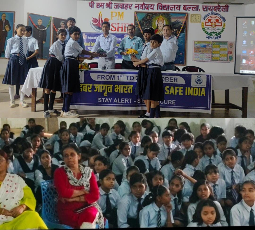 जिला रिपोर्टर रोहित मिश्रा रायबरेली रायबरेली।अमावा आज दिनांक 08/10/2025 को बावन बुजुर्ग बल्ला में पी एम श्री जवाहर नवोदय विद्यालय बल्ला, रायबरेली में गृह मंत्रालय, भारत सरकार द्वारा प्रकाशित “साइबर क्राइम सुरक्षा पर किशोरों/छात्रों के लिए पुस्तिका” के आधार पर साइबर जागरूकता अभियान चलाया गया। इस कार्यक्रम के मुख्य अतिथि साइंटिस्ट-सी/डी. डायरेक्टर (आईटी), एनआईसी डिस्ट्रिक्ट यूनिट रायबरेली बृजेश तिवारी तथा अध्यक्षता प्रभारी प्राचार्य विनीत कुमार पाठक ने की। छात्रों को साइबर अपराध, साइबर बुलिंग, ऑनलाइन धोखाधड़ी, सोशल मीडिया सुरक्षा तथा पासवर्ड संरक्षण जैसे विषयों पर जानकारी दी गई। इस कार्यक्रम…