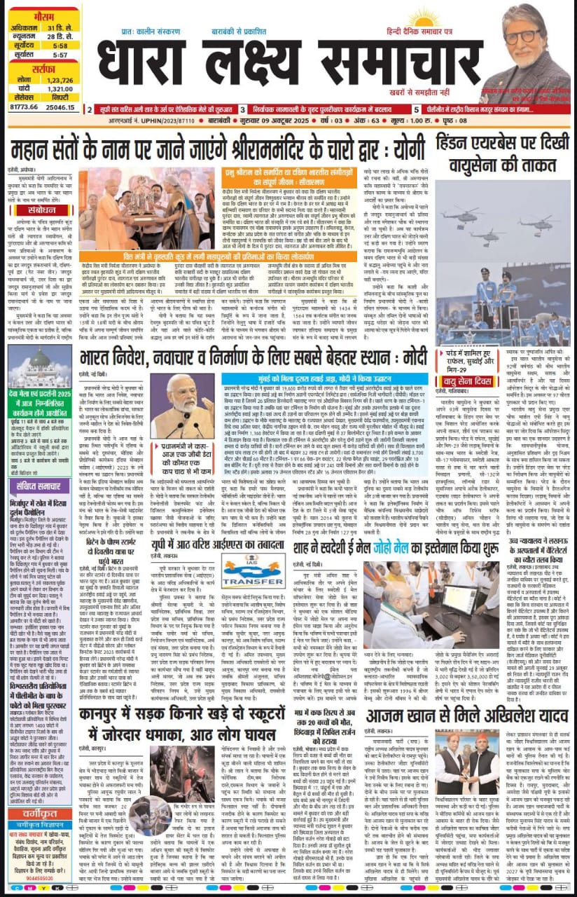 Read Moreई पेपर पढ़ें प्रातः कालीन संस्करण बाराबंकी से प्रकाशित हिन्दी दैनिक धारा लक्ष्य समाचार पत्र 09 अक्टूबर 2025