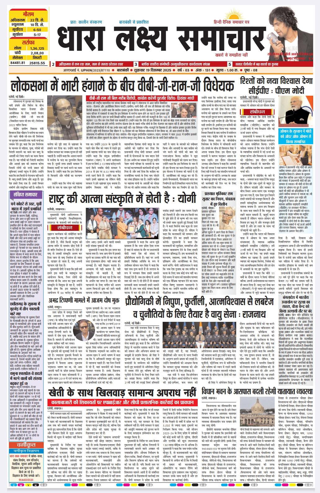 Read Moreई पेपर पढ़ें प्रातः कालीन संस्करण बाराबंकी से प्रकाशित हिन्दी दैनिक धारा लक्ष्य समाचार पत्र 19 दिसंबर 2025
