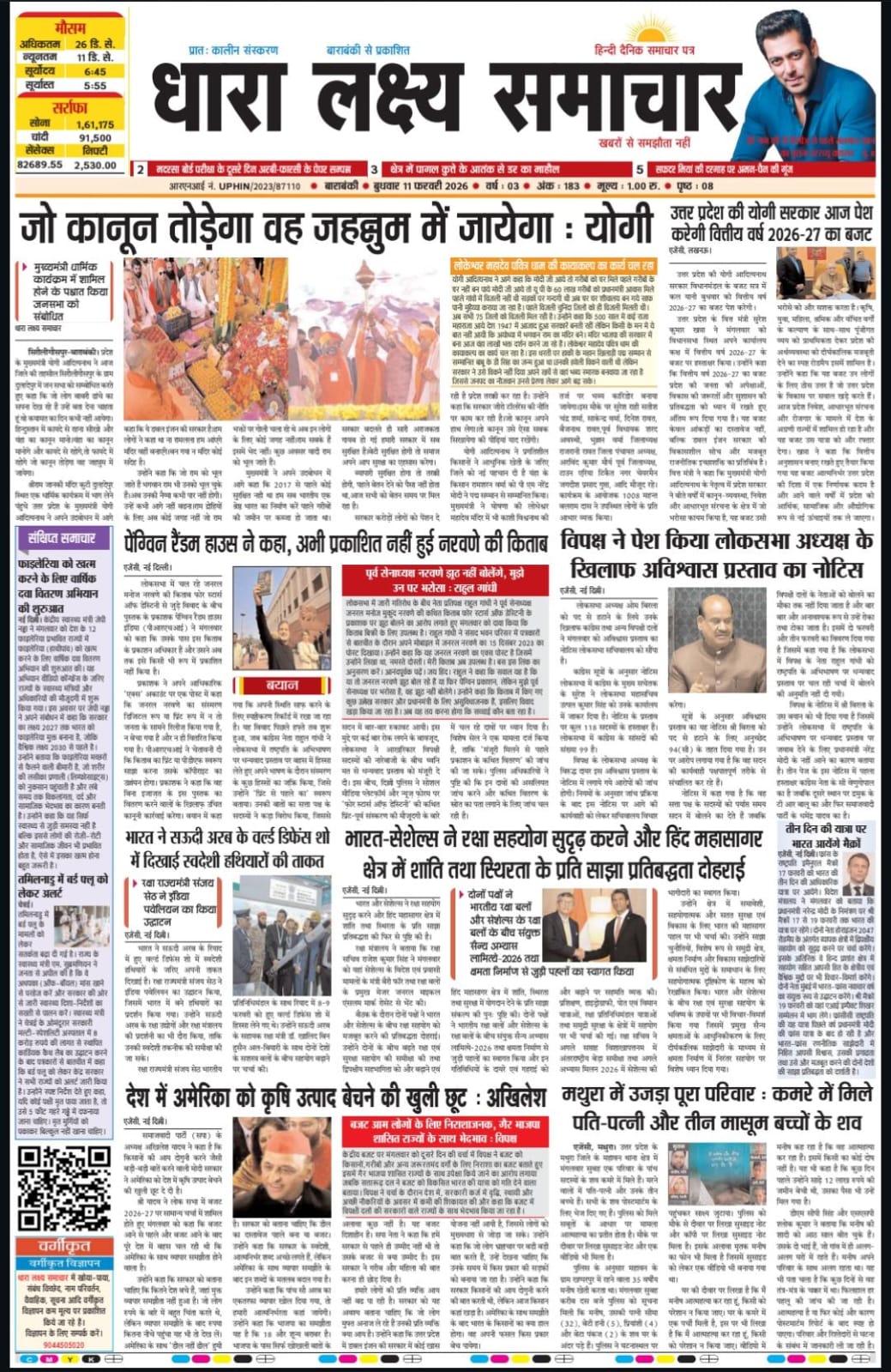 ई पेपर पढ़ें प्रातः कालीन संस्करण बाराबंकी से प्रकाशित हिंदी दैनिक धारा लक्ष्य समाचार पत्र 11 फरवरी 2026