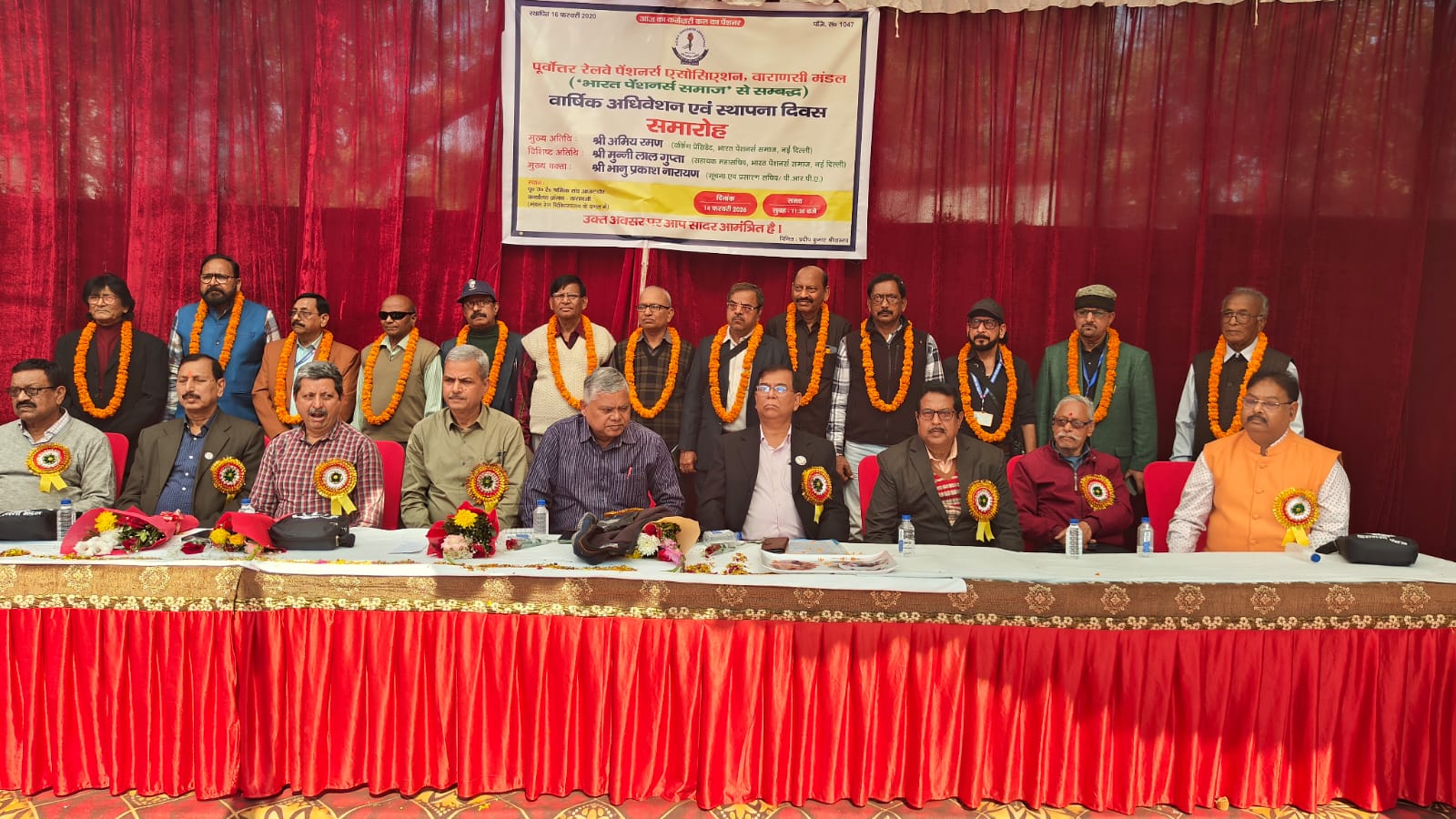 पूर्वोत्तर रेलवे पेंशनर्स एसोसिएशन वाराणसी मंडल का वार्षिक अधिवेशन एवं स्थापना दिवस धूमधाम से सम्पन्न। वाराणसी, 14 फरवरी 2026। पूर्वोत्तर रेलवे पेंशनर्स एसोसिएशन वाराणसी मंडल द्वारा शनिवार को श्रमिक संघ के आउटडोर कार्यालय प्रांगण, वाराणसी में वार्षिक अधिवेशन एवं स्थापना दिवस समारोह उत्साह और गरिमा के साथ मनाया गया। कार्यक्रम का शुभारंभ मुख्य अतिथि भारत पेंशनर्स समाज के कार्यकारी अध्यक्ष अमिय रमण, विशिष्ट अतिथि सहायक महासचिव मुन्नीलाल गुप्ता, मुख्य वक्ता भानु प्रकाश नारायण (सूचना एवं प्रसारण मंत्री, केंद्रीय संगठन), सत्य प्रकाश सिंह (सदस्य, केंद्रीय संगठन) तथा मंडल अध्यक्ष प्रदीप कुमार…