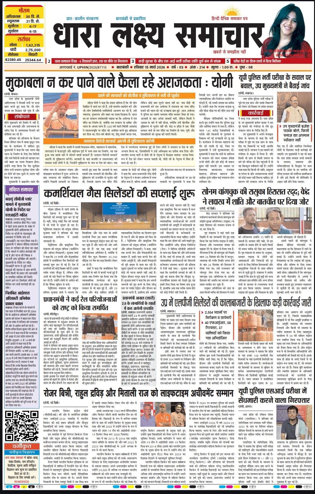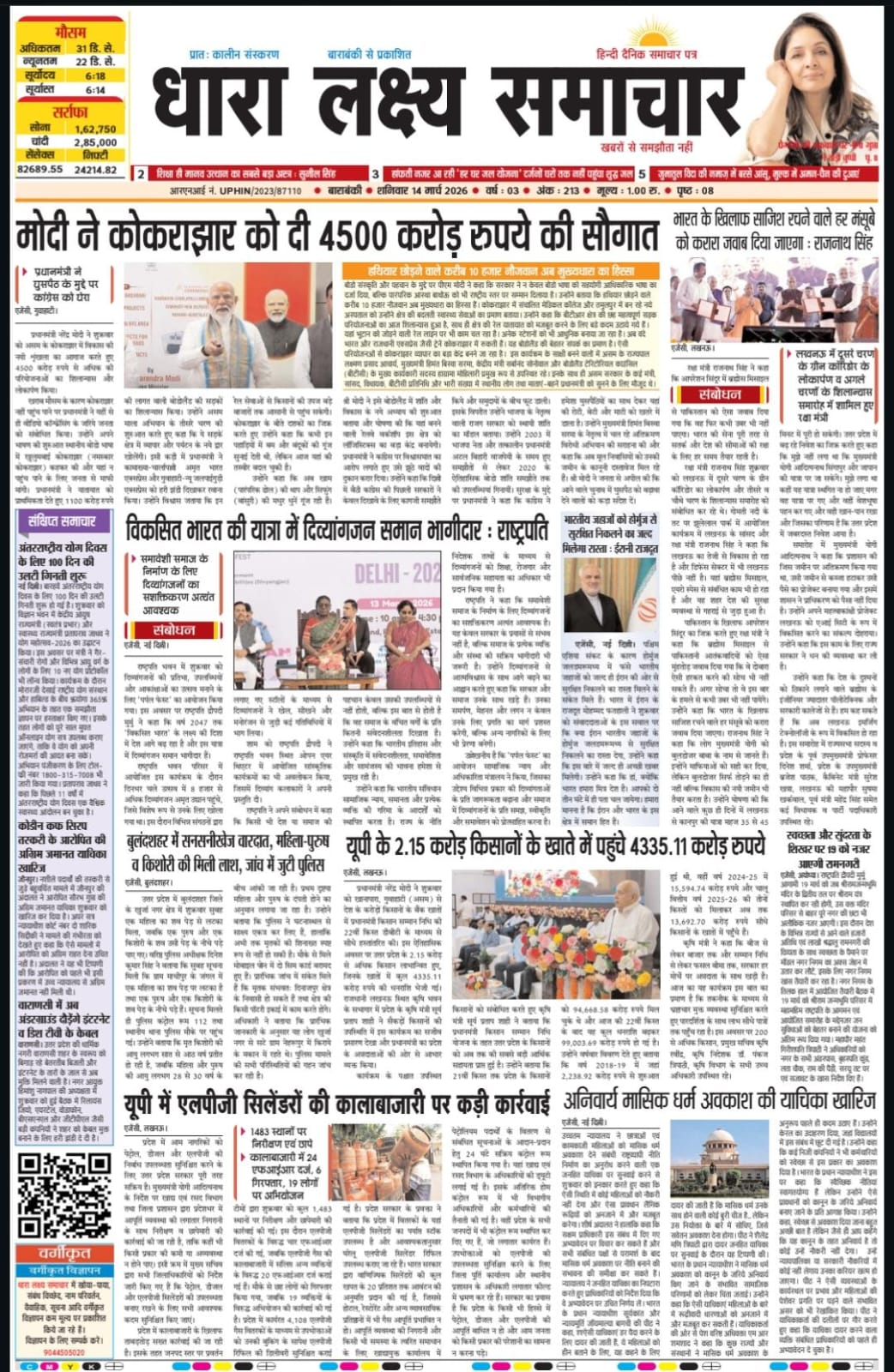 ई पेपर पढ़ें प्रातः कालीन संस्करण बाराबंकी से प्रकाशित हिंदी दैनिक धारा लक्ष्य समाचार पत्र 14 मार्च 2026