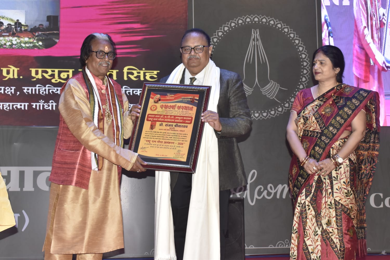 कुलपति प्रो.संजय श्रीवास्तव को मिला राष्ट्र गौरव कुलपति महात्मा गाँधी केंद्रीय विश्वविद्यालय, सम्मान। वाराणसी महात्मा गांधी केंद्रीय विश्वविद्यालय के कुलपति प्रो. संजय श्रीवास्तव को रसवर्षा संस्थान वाराणसी द्वारा अभिनन्दन एवं राष्ट्र रत्न गौरव अलंकरण सम्मान से सम्मानित किया गया। उन्हें उच्च शिक्षा, प्रसाशनिक दक्षता, समाजसेवा, भाषा एवं सांस्कृतिक सेवाओं के अमूल्य योगदान हेतु प्रदान किया गया। दीक्षांत समारोह अवसर पर आयोजित कवि सम्मेलन एवं सांस्कृतिक कार्यक्रम के मंच पर डॉक्टर चकाचौँध ज्ञानपुरी द्वारा प्रदान किया गया. साथ में एक राष्ट्रीय हास्य कवि सम्मेलन भी हुआ। डॉक्टर चकाचौँध ज्ञानपुरी के संचालन…
