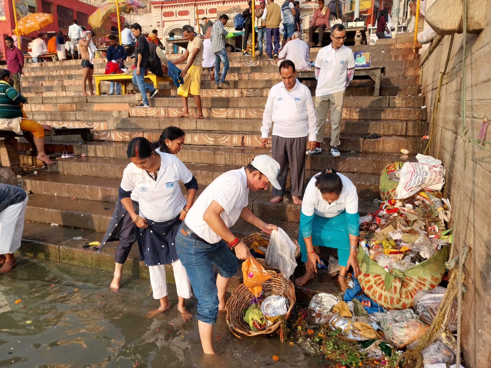 नमामि गंगे ने मेरी गंगा मेरी जिम्मेदारी का दिया संदेश। सदानीरा मां गंगा के तट पर ‘मेरी गंगा – मेरी जिम्मेदारी’ के स्वर गूंजे। नमामि गंगे के स्वयंसेवी सदस्यों ने दशाश्वमेध घाट पर सफाई करके संदेश दिया कि सच्चा भक्त वही है जो केवल गंगा में आकर स्नान करने या पूजा करने तक सीमित नहीं रहता, बल्कि गंगा की पवित्रता और स्वच्छता को बनाए रखने का संकल्प भी अपने जीवन का हिस्सा बनाता है। इसलिए सच्ची भक्ति यही है कि हम गंगा को प्रदूषित न करें, उसमें कचरा न डालें…