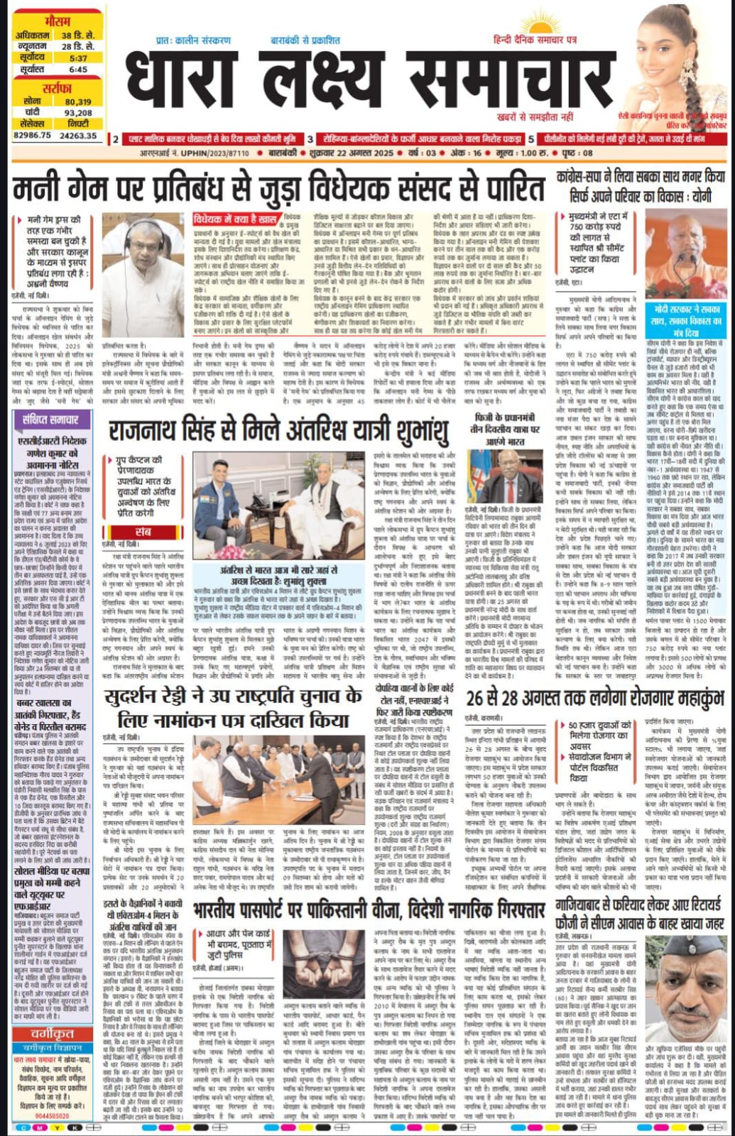 ई पेपर पढ़ें प्रातः कालीन संस्करण बाराबंकी से प्रकाशित हिन्दी दैनिक धारा लक्ष्य समाचार 22 अगस्त 2025 August 22, 2025August 22, 2025 News Desk Post Views: 144 dflip id=”10036″][/dflip]