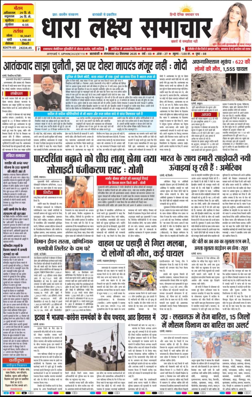 ई पेपर पढ़ें प्रातः कालीन संस्करण बाराबंकी से प्रकाशित हिन्दी दैनिक धारा लक्ष्य समाचार पत्र 02 सितम्बर 2025 September 2, 2025 News Desk Post Views: 106 नोट: अगर आपको यह खबर पसंद आई तो इसे शेयर करना न भूलें, देश-विदेश से जुड़ी ताजा अपडेट पाने के लिए कृपया Dhara Lakshya samachar के Facebook पेज को Like व Twitter पर Follow करना न भूलें...