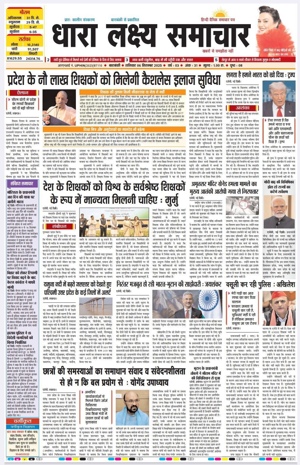 ई पेपर पढ़ें प्रातः कालीन संस्करण बाराबंकी से प्रकाशित हिन्दी दैनिक धारा लक्ष्य समाचार पत्र 06 सितम्बर 2025 September 6, 2025 News Desk Post Views: 136