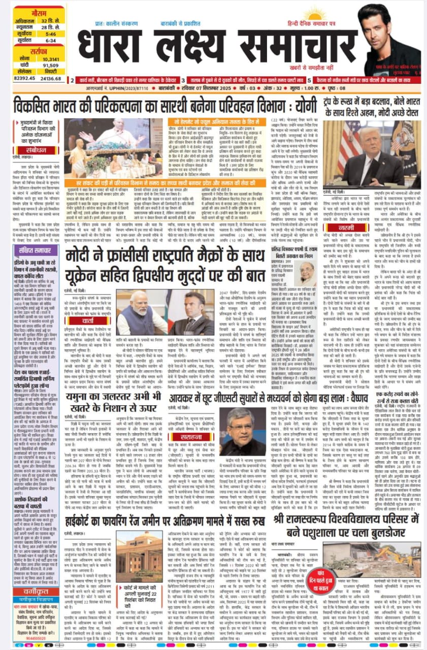 ई पेपर पढ़ें प्रातः कालीन संस्करण बाराबंकी से प्रकाशित हिन्दी दैनिक धारा लक्ष्य समाचार पत्र 07 सितम्बर 2025 September 7, 2025 News Desk Post Views: 54