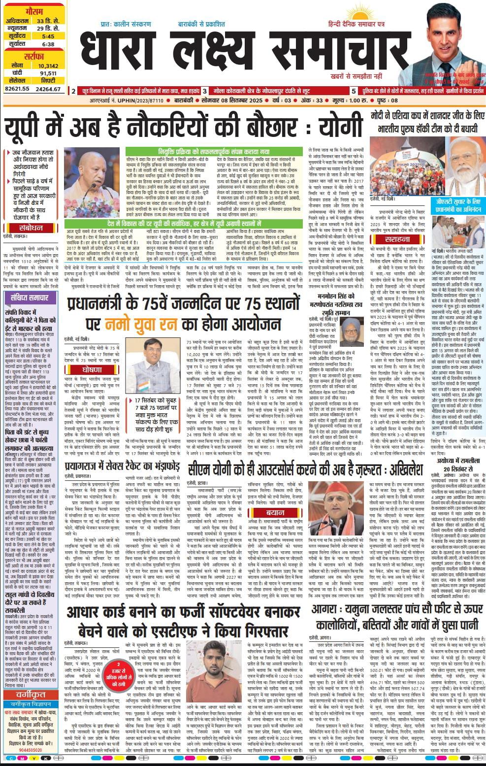 ई पेपर पढ़ें प्रातः कालीन संस्करण बाराबंकी से प्रकाशित हिन्दी दैनिक धारा लक्ष्य समाचार पत्र 08 सितम्बर 2025 September 8, 2025 News Desk Post Views: 39