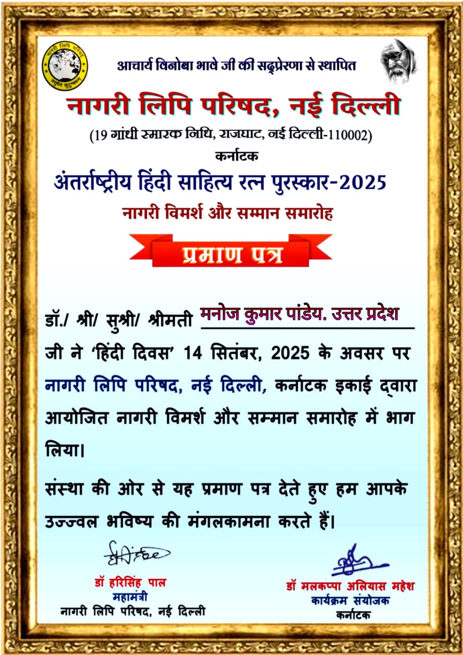 इसी क्रम में पीएम श्री जवाहर नवोदय विद्यालय, रायबरेली के हिंदी शिक्षक मनोज कुमार पांडेय को उनकी साहित्यिक एवं शैक्षिक सक्रियता के लिए “अंतर्राष्ट्रीय हिंदी साहित्य रत्न सम्मान-2025” प्रदान किया गया।