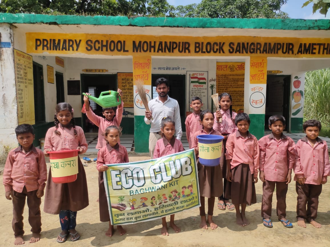 संग्रामपुर/अमेठी। जिले के प्रत्येक परिषदीय विद्यालयों में इको क्लब का गठन किया जा चुका है। इको क्लब में बच्चों को विभिन्न पदाधिकारी बनाकर उन्हें जिम्मेदारियां सौंपकर पर्यावरण संरक्षण के बारे में जागरूक किया जाता है। विद्यालय के परिवेश को हरा भरा और इको फ्रेंडली बनाने के लिए विभिन्न गतिविधियां की जाती हैं। इसी क्रम में विकास खण्ड क्षेत्र संग्रामपुर के प्राथमिक विद्यालय मोहनपुर में गठित इको क्लब के बच्चों के द्वारा आज विभिन्न गतिविधियों का आयोजन किया गया।