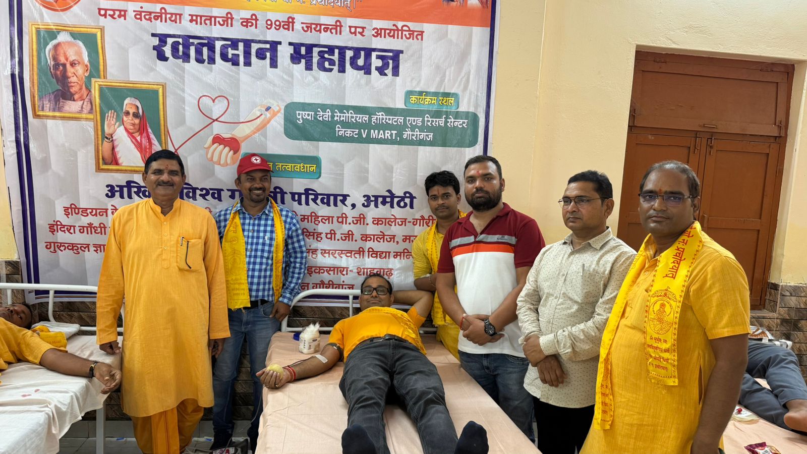 गौरीगंज/अमेठी। अखिल विश्व गायत्री परिवार अमेठी द्वारा वंदनीया माता भगवती देवी शर्मा की 99वीं जयंती के अवसर पर रक्तदान महायज्ञ का आयोजन किया गया।रविवार को पुष्पा त्रिपाठी मेमोरियल हॉस्पिटल एंड रिसर्च सेंटर, गौरीगंज में आयोजित रक्तदान महायज्ञ का शुभारंभ गौरीगंज के विधायक राकेश प्रताप सिंह के द्वारा किया गया।