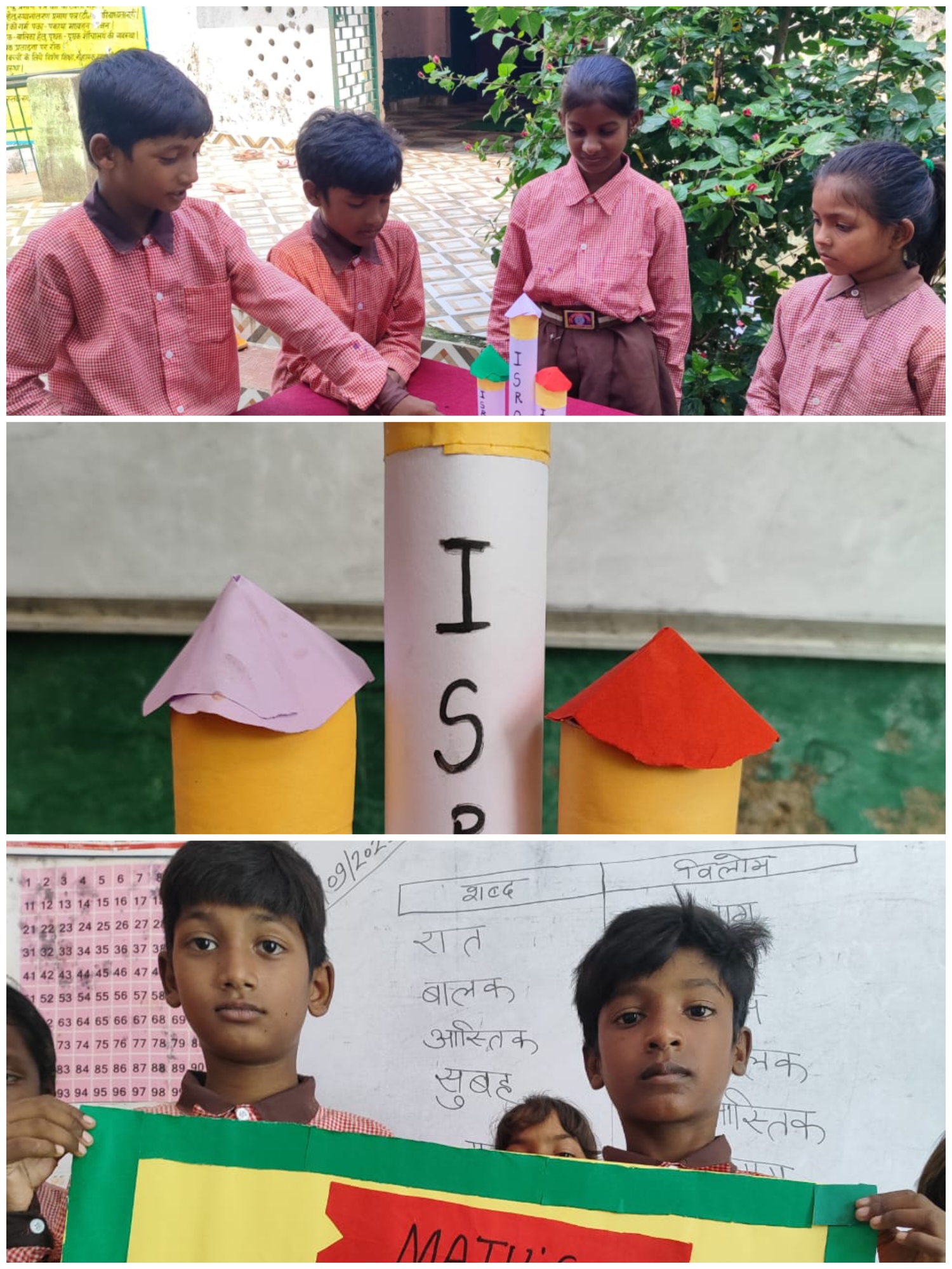 1. *मिसाइल मॉडल प्रदर्शन*: बच्चों ने अपने हाथों से बनाए गए मिसाइल के मॉडल का प्रदर्शन किया। शिक्षक प्रियांशु ने मिसाइल के महत्व, उपयोग, भारत की मिसाइल निर्माण में आत्मनिर्भरता, और इसरो के बारे में विस्तृत जानकारी दी।बच्चों में विज्ञान और अंतरिक्ष अंवेषणों के बारे में जानकारी देने के लिए भारतीय अंतरिक्ष मिशन जैसे इसरो द्वारा भेजे गए चंद्रयान के महत्व और उपलब्धियों को समझने में मदद मिल सके