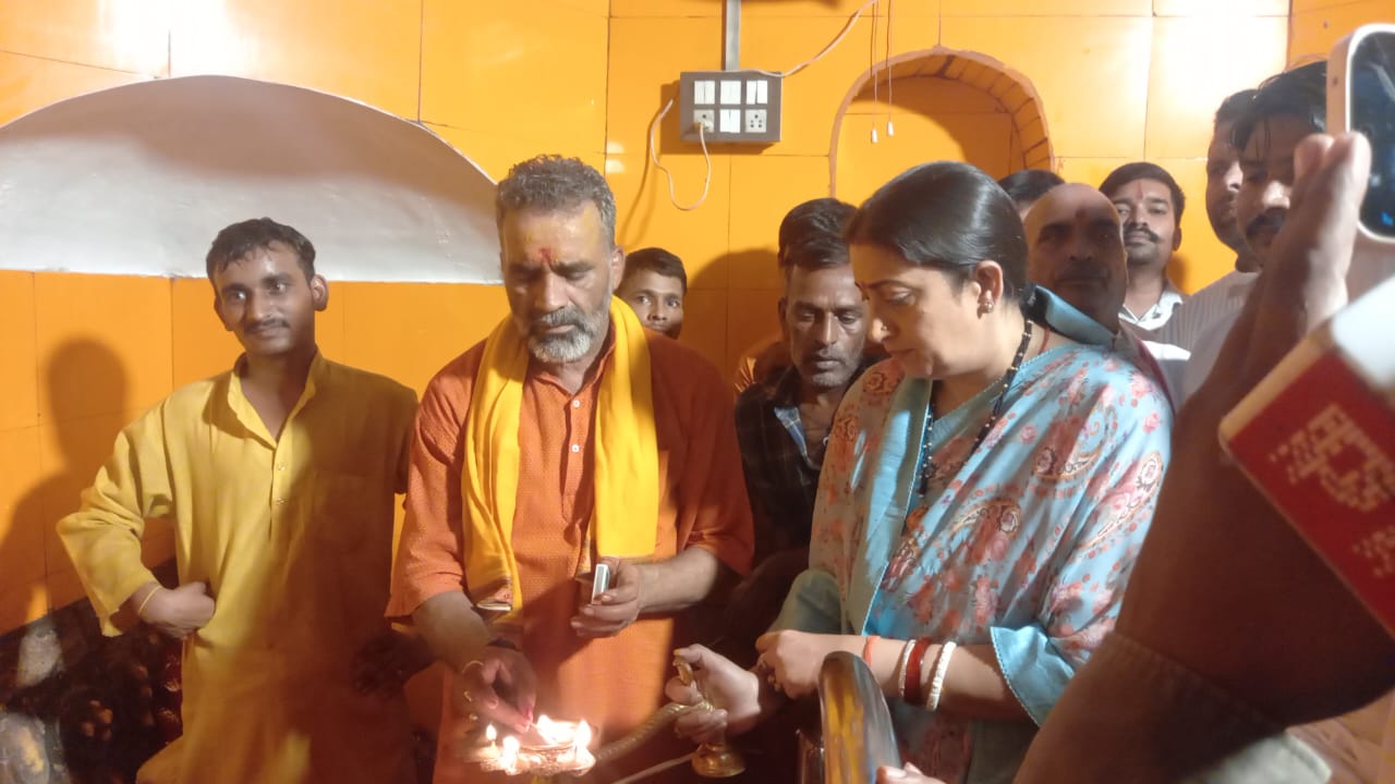 मंदिर परिसर में प्रवेश करने से संग्रामपुर भाजपा मंडल अध्यक्ष राजेश शुक्ला और प्रधान संघ अध्यक्ष संग्रामपुर संजय सिंह उर्फ मुन्ना ने बुके भेंट कर उनका अभिनंदन किया। तत्पश्चात स्मृति ईरानी माता कालिका के गर्भगृह में पहुंचीं, जहाँ उन्होंने विधि-विधान से पूजा अर्चना और आरती की। इस अवसर पर कालिकन धाम पीठाधीश्वर श्री महाराज ने पूजा संपन्न कराई और पूर्व केंद्रीय मंत्री को आशीर्वाद प्रदान किया।
