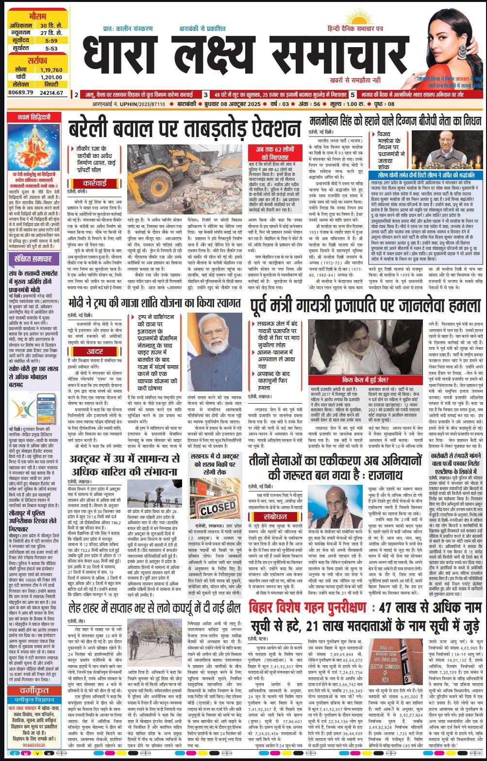 ई पेपर पढ़ें प्रातः कालीन संस्करण बाराबंकी से प्रकाशित हिन्दी दैनिक धारा लक्ष्य समाचार पत्र 01 अक्टूबर 2025 October 1, 2025 News Desk Post Views: 94 नोट: अगर आपको यह खबर पसंद आई तो इसे शेयर करना न भूलें, देश-विदेश से जुड़ी ताजा अपडेट पाने के लिए कृपया Dhara Lakshya samachar के Facebook पेज को Like व Twitter पर Follow करना न भूलें...