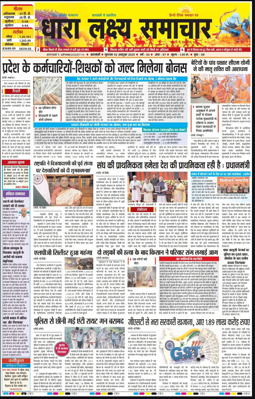 ई पेपर पढ़ें प्रातः कालीन संस्करण बाराबंकी से प्रकाशित हिन्दी दैनिक धारा लक्ष्य समाचार पत्र 02 अक्टूबर 2025 October 2, 2025 News Desk Post Views: 127