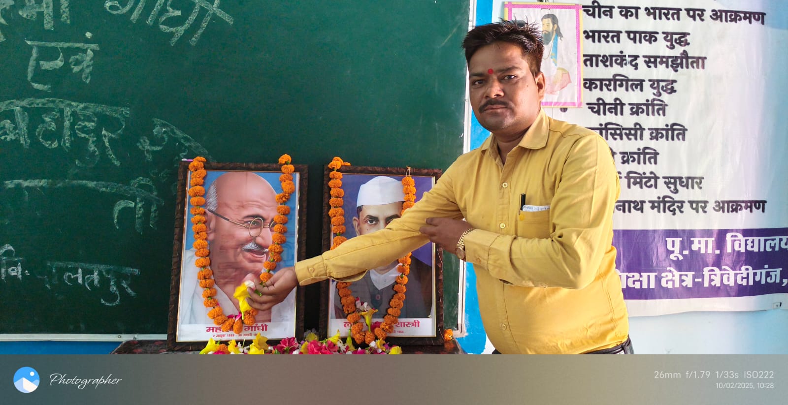 कार्यक्रम की शुरुआत महात्मा गांधी और लाल बहादुर शास्त्री की तस्वीरों पर पुष्प अर्पित कर की गई। इसके बाद विद्यालय परिसर में लगाए गए आम के पेड़ की सुरक्षा का संकल्प लिया गया।