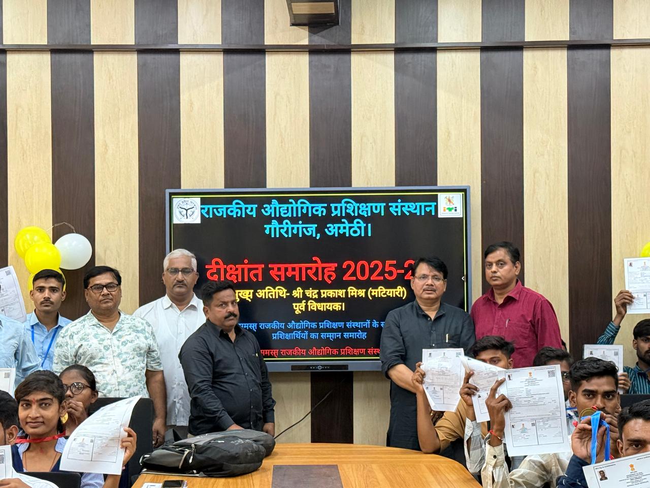 अमेठी। राजकीय औद्योगिक प्रशिक्षण संस्थान (आईटीआई) गौरीगंज में आज दीक्षांत समारोह का आयोजन किया गया। प्रशिक्षण सत्र 2024-25 में जनपद के सभी राजकीय आईटीआई के प्रथम एवं द्वितीय स्थान प्राप्त प्रशिक्षार्थियों को सम्मानित किया गया। कार्यक्रम में मुख्य अतिथि के रूप में उपस्थित पूर्व विधायक चंद्रप्रकाश मिश्र ने मेधावी प्रशिक्षार्थियों को पदक प्रदान किए। प्रथम स्थान प्राप्त करने वाले छात्रों को गोल्ड मेडल और द्वितीय स्थान प्राप्त करने वालों को सिल्वर मेडल से सम्मानित किया गया। अपने संबोधन में मिश्र ने कहा कि “आईटीआई विश्व की सबसे बड़ी तकनीकी शिक्षा है। कोई भी औद्योगिक प्रतिष्ठान आईटीआई उत्तीर्ण प्रशिक्षार्थियों के बिना सम्भव नहीं है।”