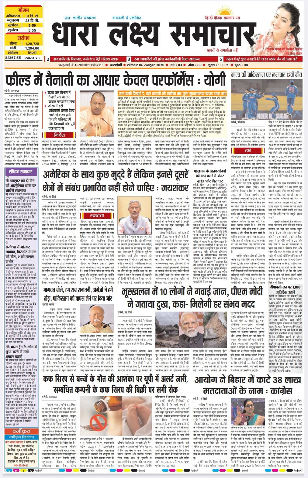 ई पेपर पढ़ें प्रातः कालीन संस्करण बाराबंकी से प्रकाशित हिन्दी दैनिक धारा लक्ष्य समाचार पत्र 06 अक्टूबर 2025 October 6, 2025 News Desk Post Views: 94