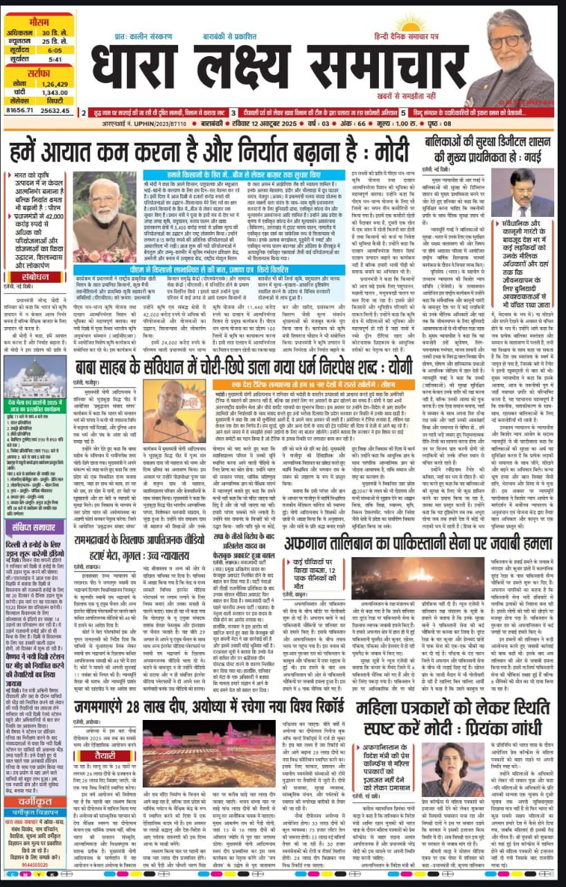 ई पेपर पढ़ें प्रातः कालीन संस्करण बाराबंकी से प्रकाशित हिन्दी दैनिक धारा लक्ष्य समाचार पत्र 12 अक्तूबर 2025 October 12, 2025 News Desk Post Views: 63