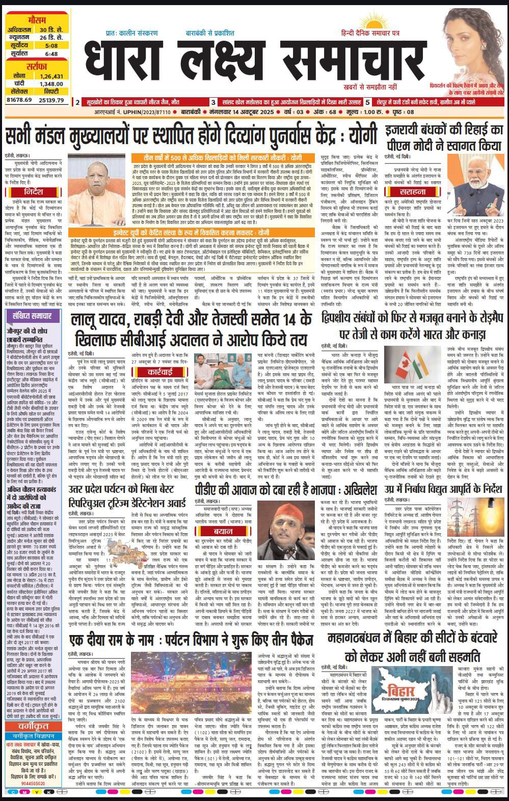 ई पेपर पढ़ें प्रातः कालीन संस्करण बाराबंकी से प्रकाशित हिन्दी दैनिक धारा लक्ष्य समाचार पत्र 14 अक्तूबर 2025 October 16, 2025 News Desk Post Views: 67