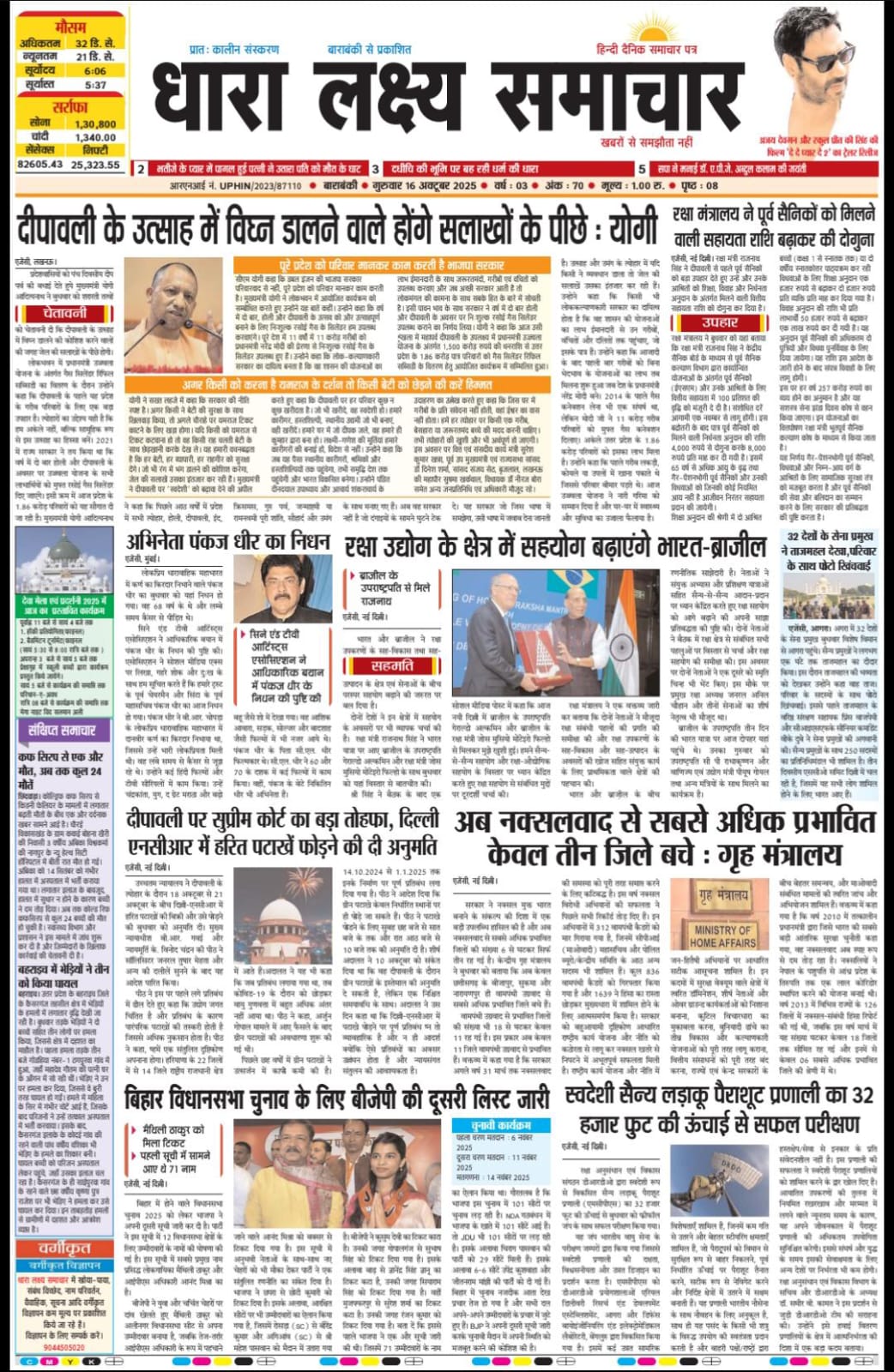 ई पेपर पढ़ें प्रातः कालीन संस्करण बाराबंकी से प्रकाशित हिन्दी दैनिक धारा लक्ष्य समाचार पत्र 16 अक्तूबर 2025 October 16, 2025 News Desk Post Views: 73