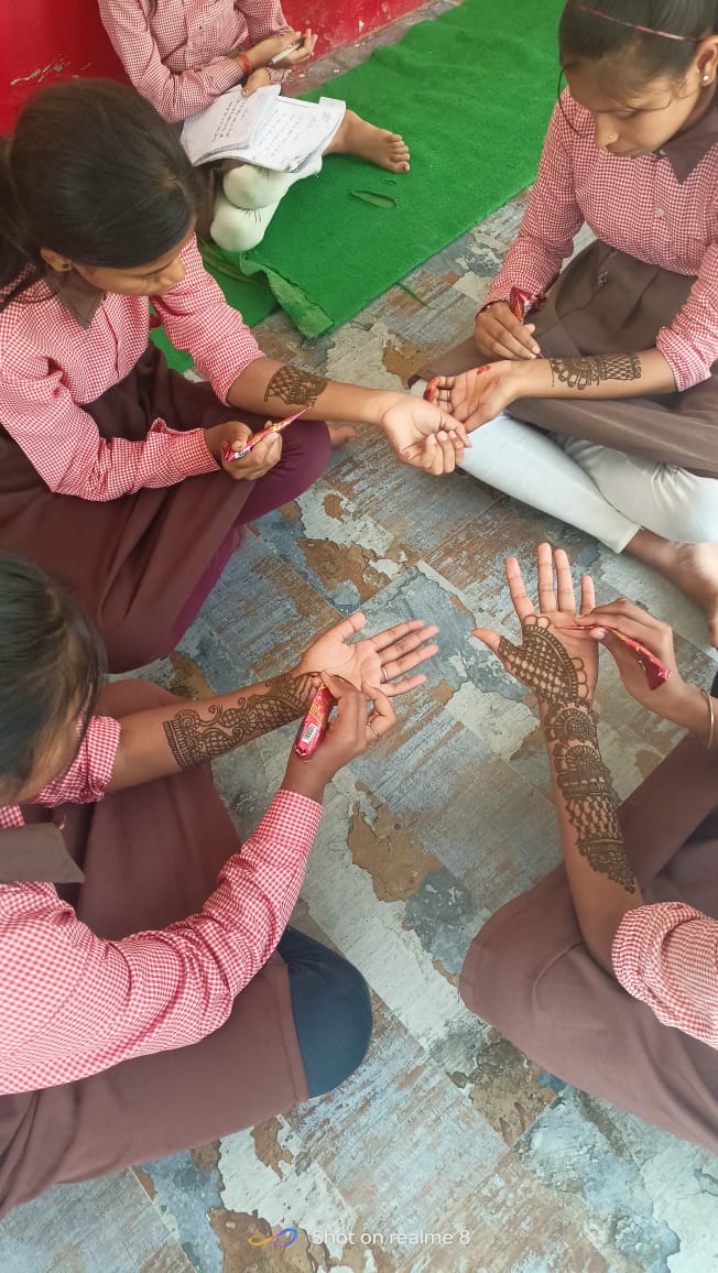 इसके बाद प्रेरणा गीत ज्ञान का दीप हम जलाएंगे बदलेगा जमाना का आयोजन हुआ। उसके बाद वर्ड अपोजिट तथा हास्य एक्टिविटी संजय सर के द्वारा बोतल के माध्यम से हुई। जिसमें सभी बच्चे लोटपोट हो गए, मेहंदी प्रतियोगिता के बाद जलेबी दौड़ बालक एवं बालिकाओं के लिये अलग अलग करवाई गई। जिसमे प्रथम स्थान बालक शिवम तथा बालिका मे संध्या रही।