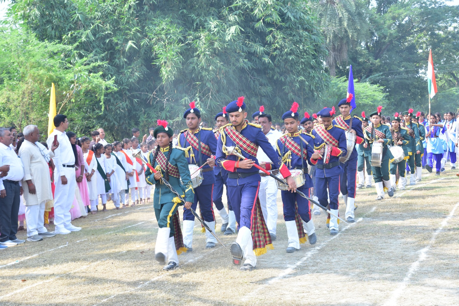 तत्पश्चात मंत्री श्री सिंह ने ध्वजारोहण कर कबूतर और गुब्बारे उड़ाकर प्रतियोगिता का औपचारिक उद्घाटन किया। उद्घाटन समारोह के पूर्व विद्या कलश हाई स्कूल, खानापुर चपरा के आकर्षक स्काउट बैंड के साथ सभी जोनों के खिलाड़ियों ने प्रभावशाली मार्च पास्ट प्रस्तुत किया। मंत्री श्री मयंकेश्वर शरण सिंह ने मार्च पास्ट की सलामी लेकर खिलाड़ियों का उत्साहवर्धन किया।