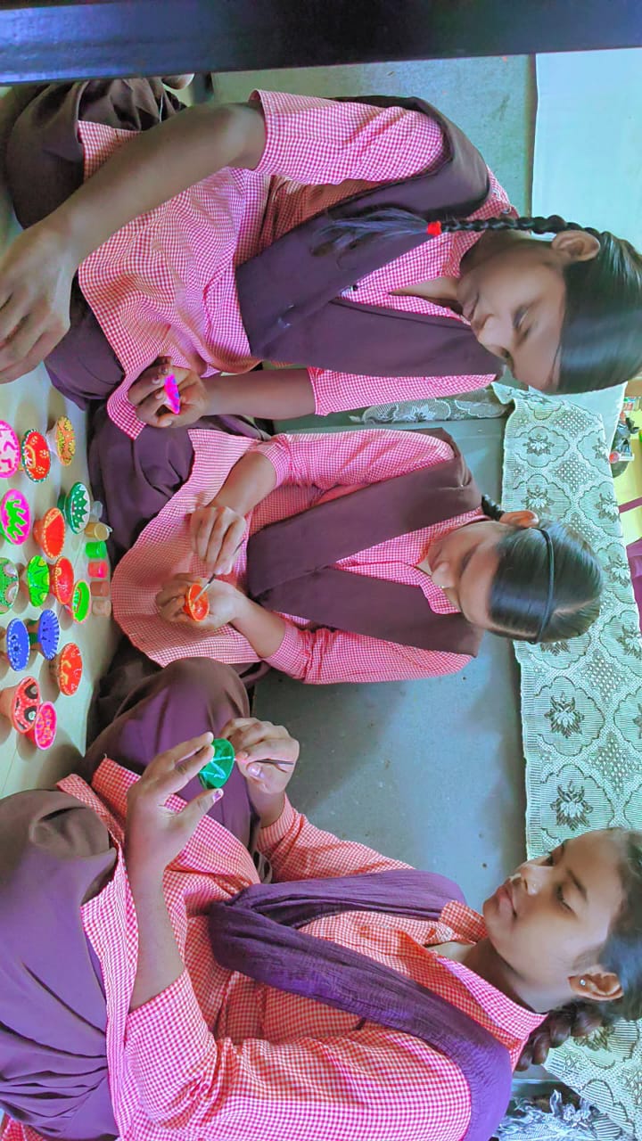 विद्यालय की वार्डन सीमा त्रिपाठी के निर्देशन में विद्यालय की बालिकाओं के मध्य दीपावली के पर्व के मद्देनजर ‘दीया मेकिंग कम्पटीशन’ आयोजित किया गया। जिसमें बच्चों ने बहुत खूबसूरत दीये बनाकर सबका ध्यान आकर्षित किया। विद्यालय की शिक्षिका रश्मि सिंह के निर्देशन में बच्चों ने फूलों और पत्तियों के द्वारा अनेक डिज़ाइन में रंगोली बनाकर अपनी प्रतिभा का परिचय दिया। इसके बाद बच्चों ने दीयों से शासन के महिला हेल्पलाइन नबरों की आकृति बनाई।