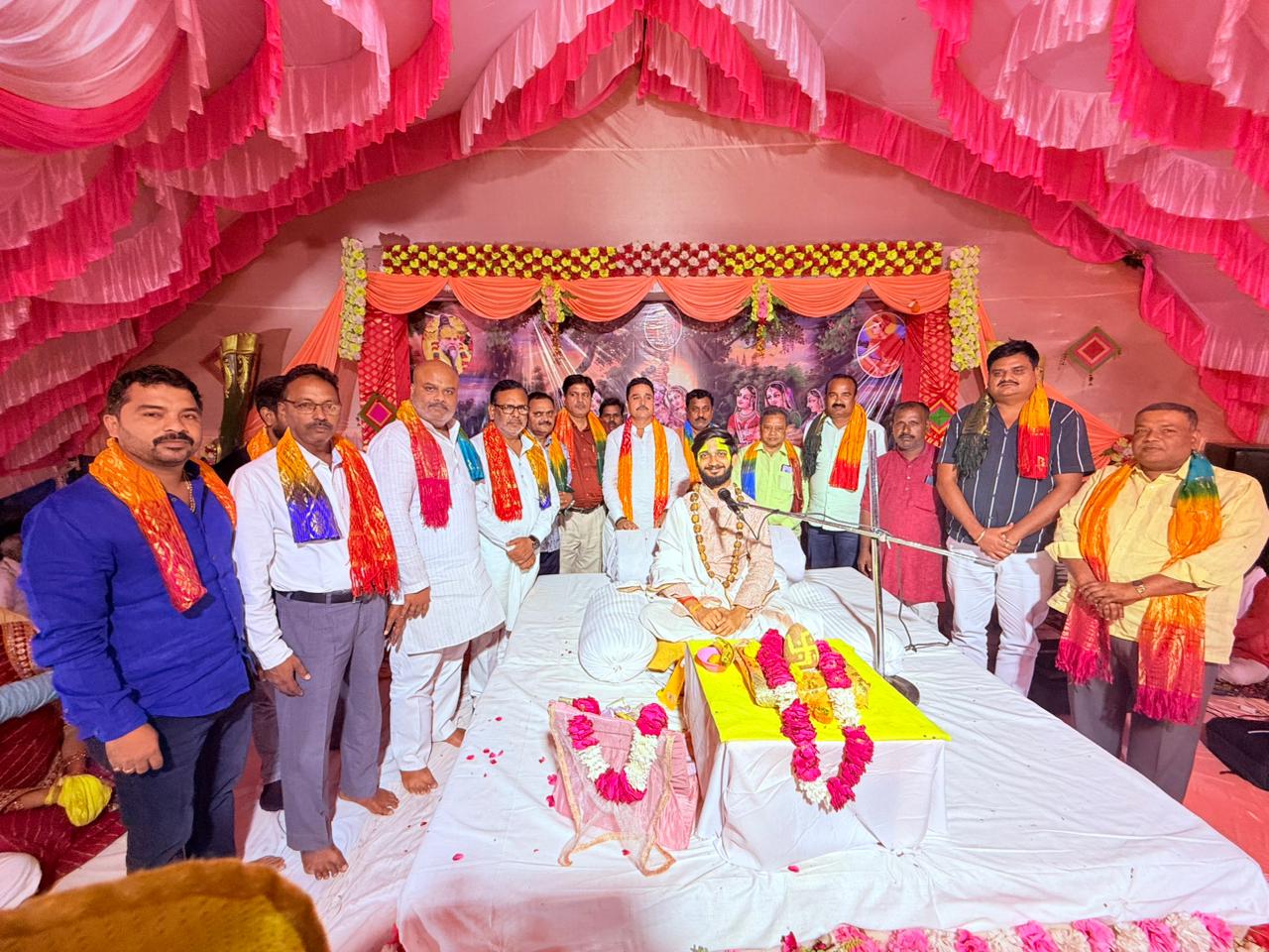 कार्यक्रम के लिए कथा पंडाल को गुब्बारों और फूल-मालाओं से आकर्षक ढंग से सजाया गया था। कथावाचक कन्हैया जी भारद्वाज ने प्रवचन के दौरान भगवान श्रीकृष्ण की लीलाओं का वर्णन किया।
