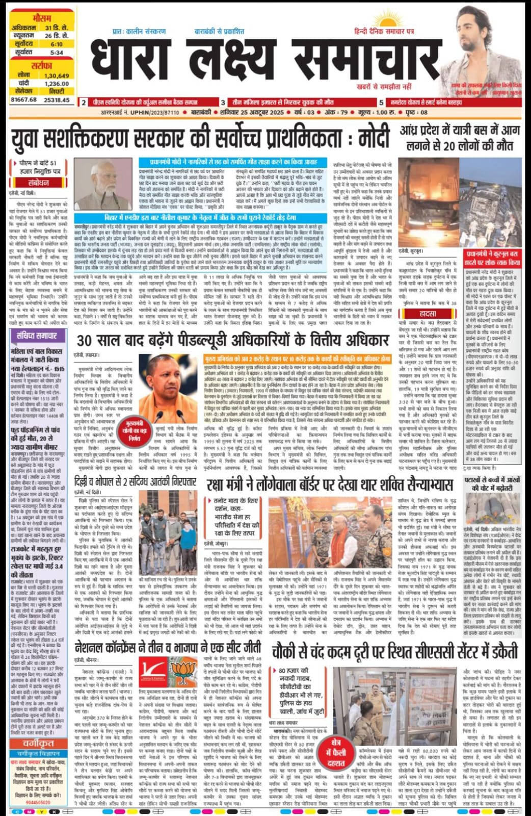 ई पेपर पढ़ें प्रातः कालीन संस्करण बाराबंकी से प्रकाशित हिन्दी दैनिक धारा लक्ष्य समाचार पत्र 25 अक्तूबर2025 October 26, 2025 News Desk Post Views: 57