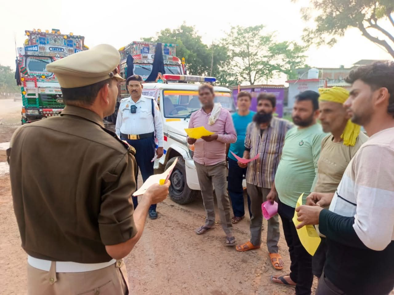 तथा जागरूकता अभियान के अन्तर्गत यातायात नियमों के पालन से सम्बन्धित बैनर व पोस्टर सार्वजनिक स्थानों पर लगवाते हुए आम जनता को पम्पलेट व हैण्डबिल वितरित करते हुये वाहनों पर रेट्रो रिफ्लेक्टर टेप लगाये गये एवं यातायात नियमों का पालन करने हेतु निवेदन किया गया।
