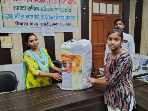 अमेठी। युवा कल्याण एवं प्रांतीय रक्षक दल विभाग द्वारा जनपद के विभिन्न ब्लॉकों में मंगल दलों को खेल प्रोत्साहन के उद्देश्य से खेल सामग्री वितरित की गई।