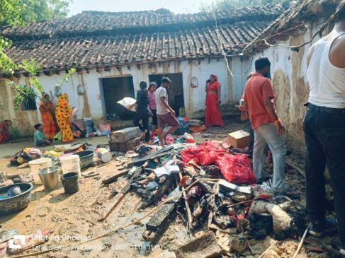 आग लगने से कच्चे घर में छप्पर के नीचे रखा पूरा घर जलकर राख हो गया, घर में रखे सामान और खाने के लिए एक भी दाना नहीं रह गया है।
