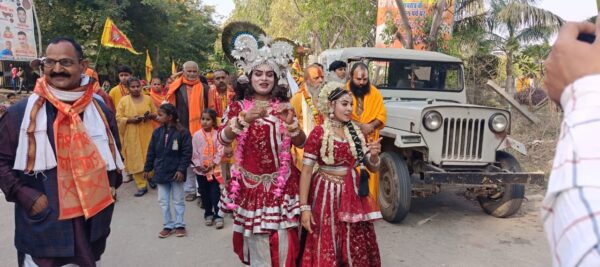 संग्रामपुर/अमेठी। सोमवार को विकास खण्ड संग्रामपुर क्षेत्र के ग्राम सभा कसारा में मंगलवार से होनेवाली श्रीमद्भागवत कथा सप्ताह ज्ञानयज्ञ को लेकर आज कथा स्थल कसारा से मनमोहक झांकी के साथ कथा वाचक पूज्य संत किशोरी शरण जी महराज की अगुवाई में भव्य कलशयात्रा निकाली गई।