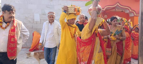 यह धार्मिक कलश यात्रा कसारा मोड़, शंकरपुर चौराहा और टिकरिया गांव होते हुए माता कालिकन धाम पहुंची।