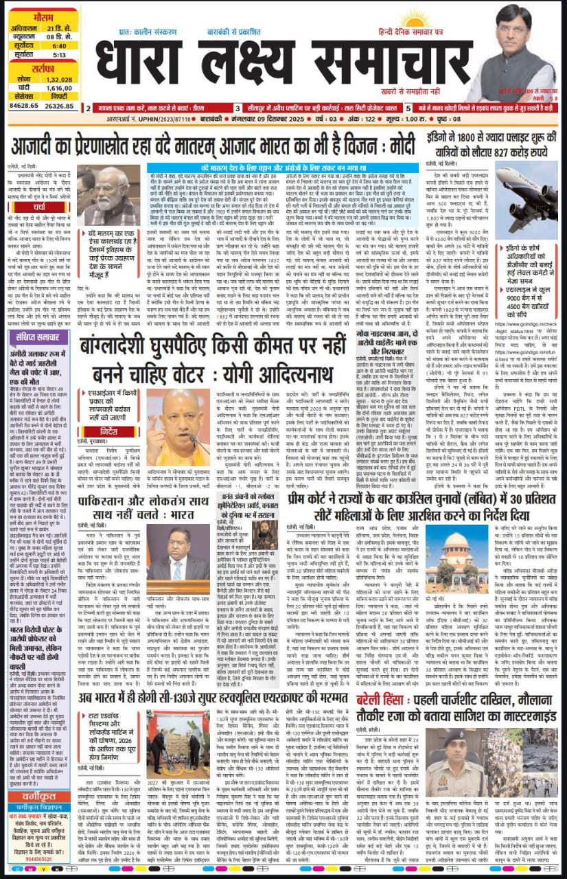 ई पेपर पढ़ें प्रातः कालीन संस्करण बाराबंकी से प्रकाशित हिन्दी दैनिक धारा लक्ष्य समाचार पत्र 09 दिसंबर 2025 December 9, 2025 News Desk Post Views: 56