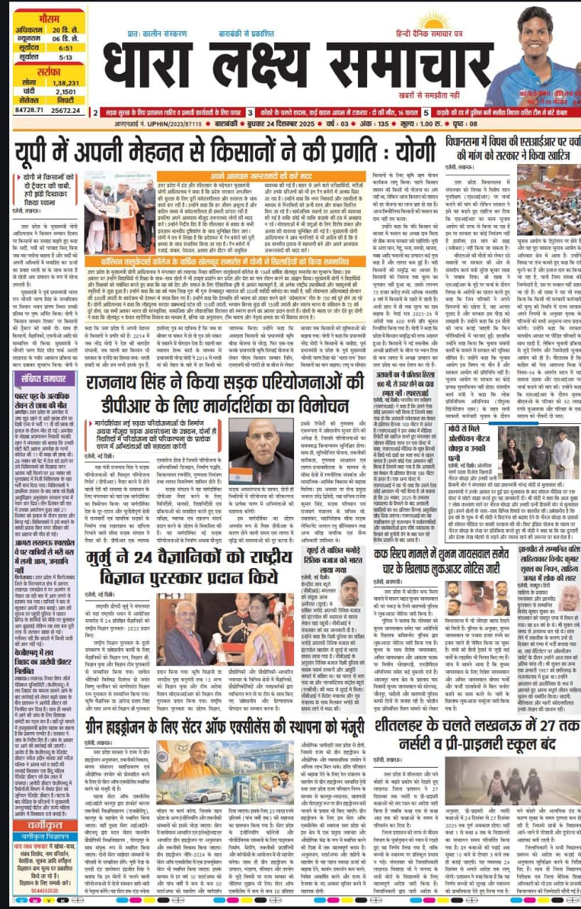 ई पेपर पढ़ें प्रातः कालीन संस्करण बाराबंकी से प्रकाशित हिंदी दैनिक धारा लक्ष्य समाचार पत्र 24 दिसम्बर 2025 December 25, 2025 News Desk Post Views: 44