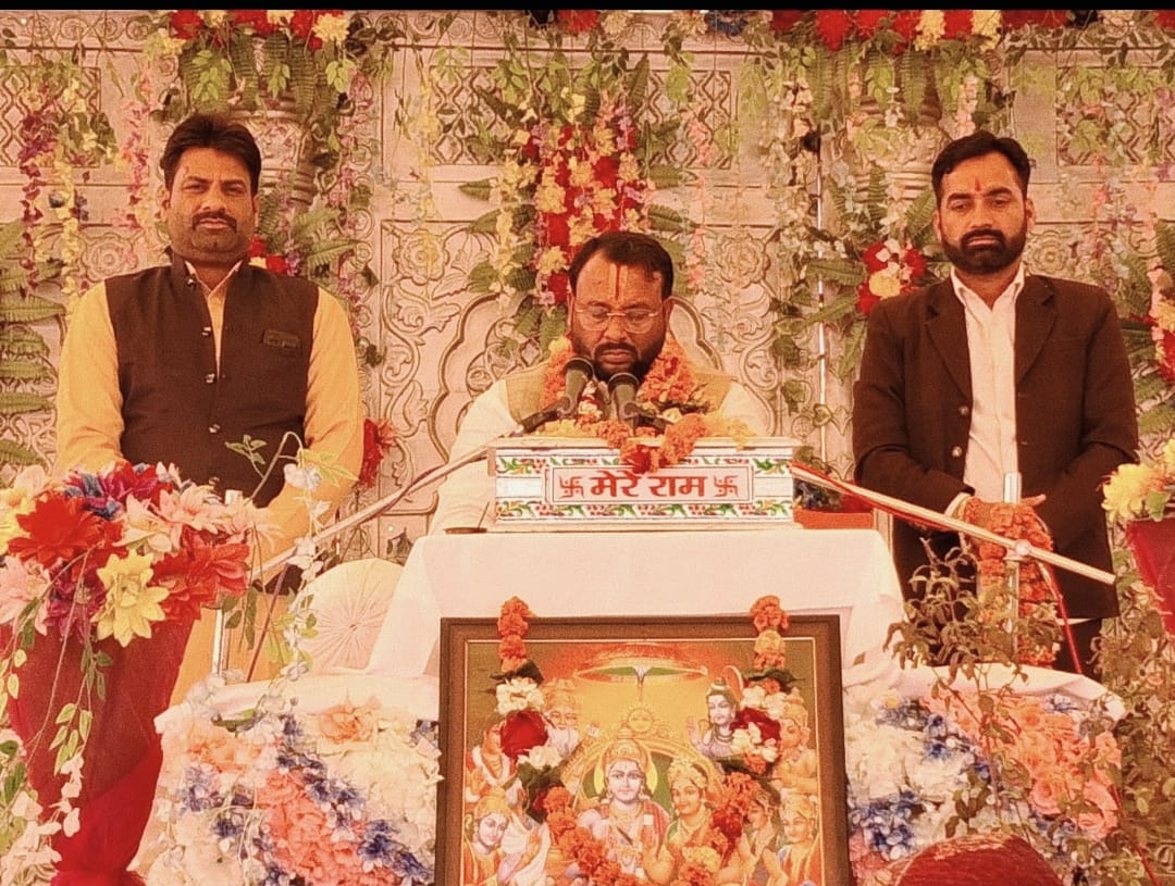 कथावाचक कृष्णनंद जी महाराज ने श्रीराम कथा की महिमा का वर्णन करते हुए कहा कि यह कथा हमें सन्मार्ग पर चलना सिखाती है।