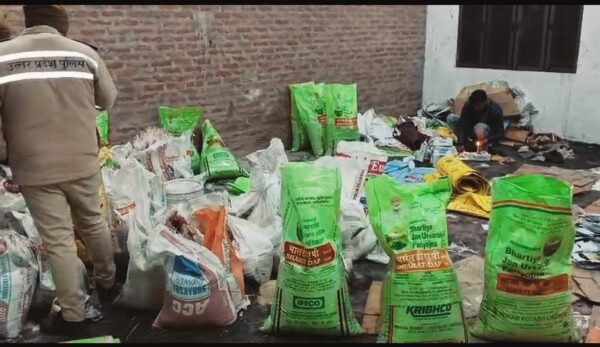 मौके से विभिन्न कंपनियों के खाली बैग, बोरियां, इफको व आईपीएल डीएपी के पैकेट, 200 बोतल बीपीएल डीएपी, 3400 बोतल इफको डीएपी तथा 500 खाली डीएपी बोतलें समेत अन्य संदिग्ध सामग्री भी बरामद की गई।