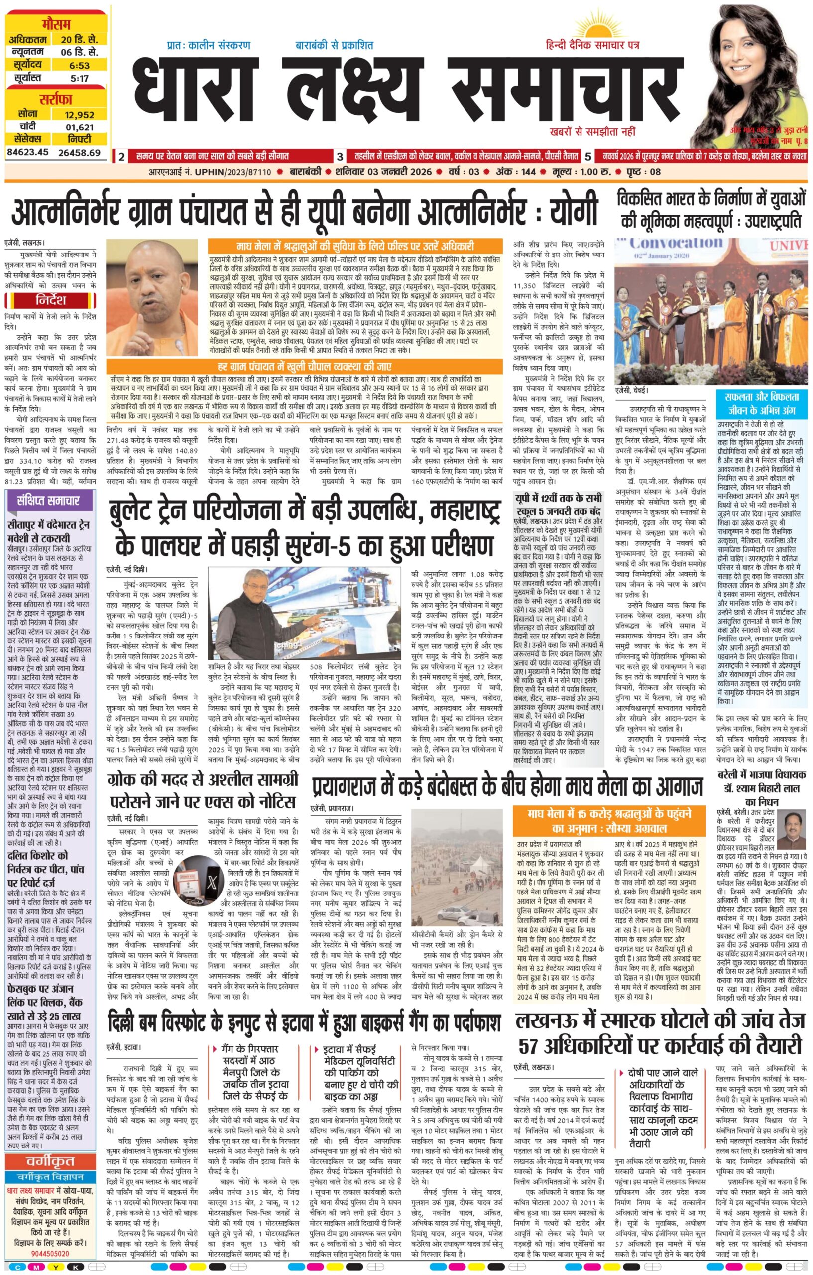 ई पेपर पढ़ें प्रातः कालीन संस्करण बाराबंकी से प्रकाशित हिन्दी दैनिक धारा लक्ष्य समाचार पत्र 03 जनवरी 2026 January 3, 2026 News Desk Post Views: 20 dflip id=”17974″][/dflip]