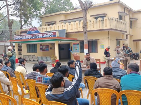 संग्रामपुर/अमेठी। जिले के थाना संग्रामपुर परिसर में नवागत थानाध्यक्ष संजय सिंह की अध्यक्षता में रविवार को पीस कमेटी की बैठक आयोजित हुई। इस बैठक में संग्रामपुर क्षेत्र के प्रधान, सामाजिक और सम्मानित लोगों के साथ कानून व्यवस्था को और बेहतर बनाने को लेकर विचार -विमर्श किया गया।