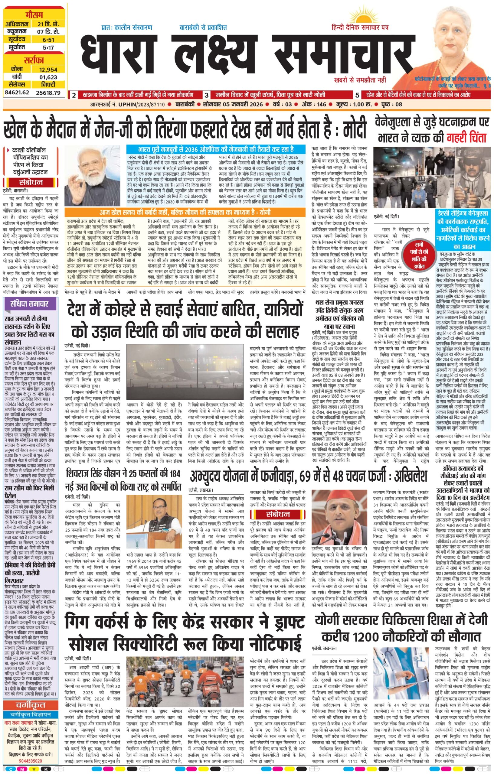 ई पेपर पढ़ें प्रातः कालीन संस्करण बाराबंकी से प्रकाशित हिन्दी दैनिक धारा लक्ष्य समाचार पत्र 05 जनवरी 2026 January 5, 2026 News Desk Post Views: 32