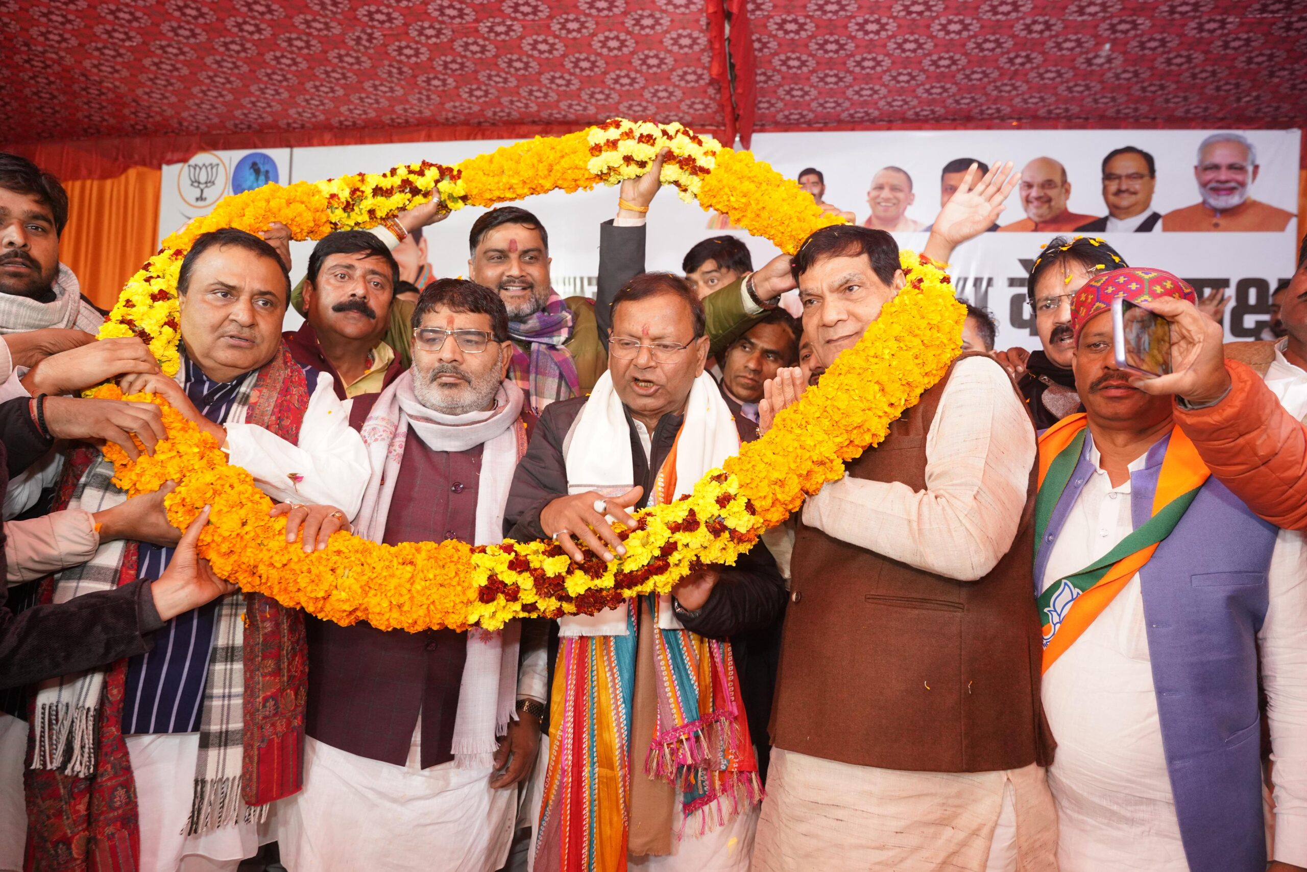प्रदेश अध्यक्ष श्री पंकज चौधरी के प्रथम मऊ आगमन पर मंत्री ए के शर्मा के नेतृत्व में ऐतिहासिक स्वागत