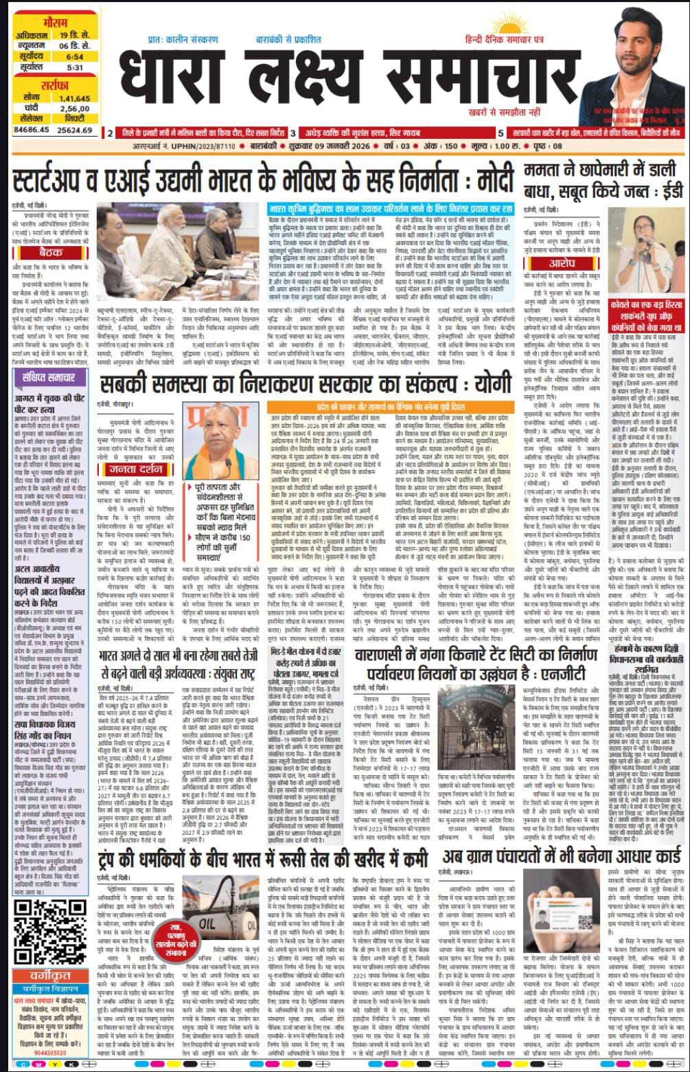 ई पेपर पढ़ें प्रातः कालीन संस्करण बाराबंकी से प्रकाशित हिंदी दैनिक धारा लक्ष्य समाचार पत्र 09 जनवरी 2026 January 9, 2026 News Desk Post Views: 6