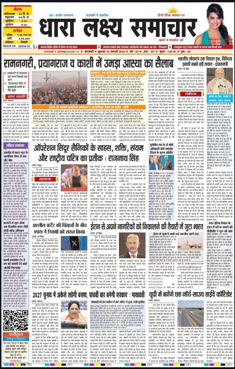 ई पेपर पढ़ें प्रातः कालीन संस्करण बाराबंकी से प्रकाशित हिंदी दैनिक धारा लक्ष्य समाचार पत्र 16 जनवरी 2026 January 16, 2026 News Desk Post Views: 17